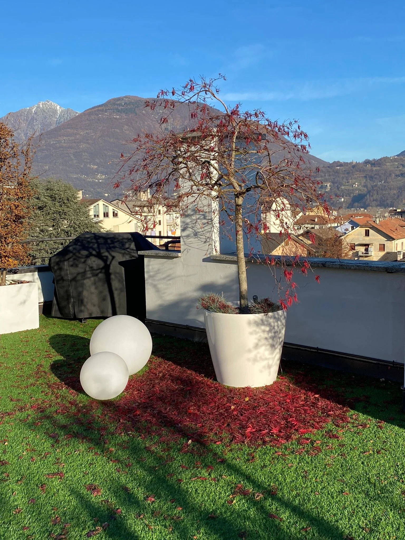 Le alberature di maggiore importanza sono costituite da aceri japonica di varietà ricercate, scelti per la loro capacità di esprimere una bellezza mutevole e scenografica nelle diverse stagioni dell’anno.