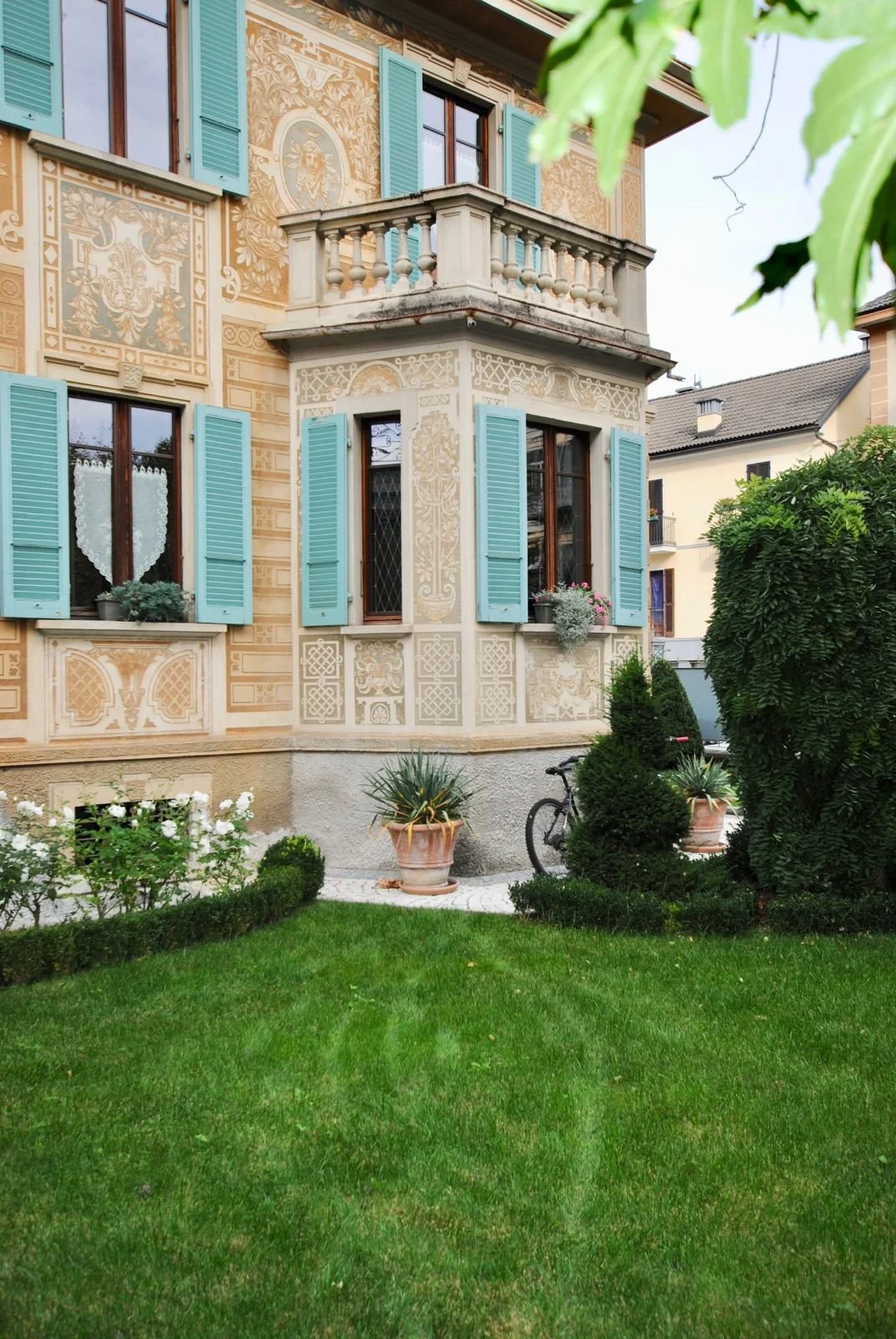 Una Sophora japonica pendula diventa il punto focale del bowindow della casa, con un’espressività delicata ma al contempo strutturata e dominante.