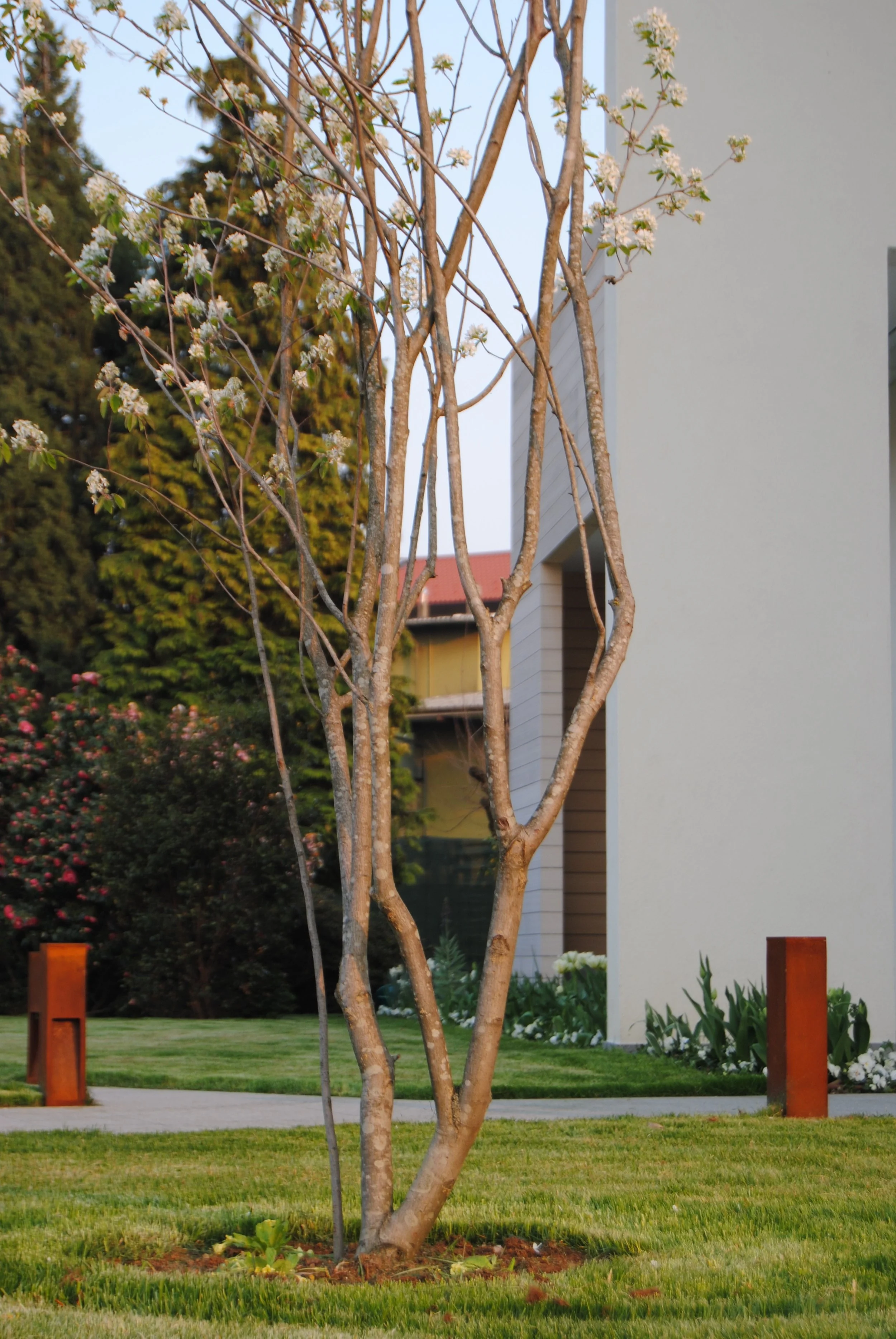 Il colore dominante è il bianco, declinato nelle essenze arboree e floreali selezionate, che esprimono una ricerca di purezza formale e di rigore progettuale.