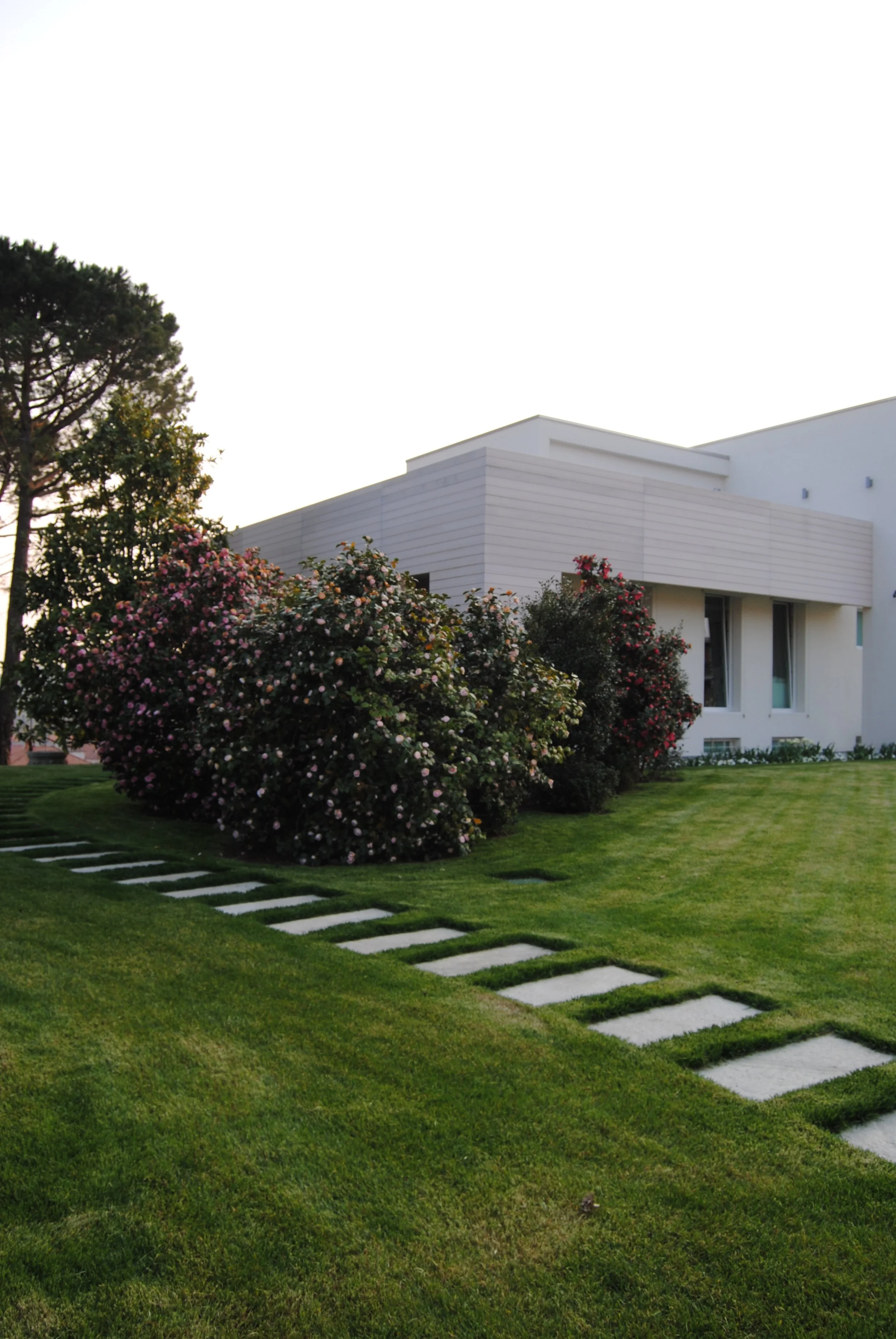 Le scelte vegetali diventano linguaggio, testimonianza di un intervento misurato e consapevole, in cui il giardino non è semplice cornice, ma spazio costruito.