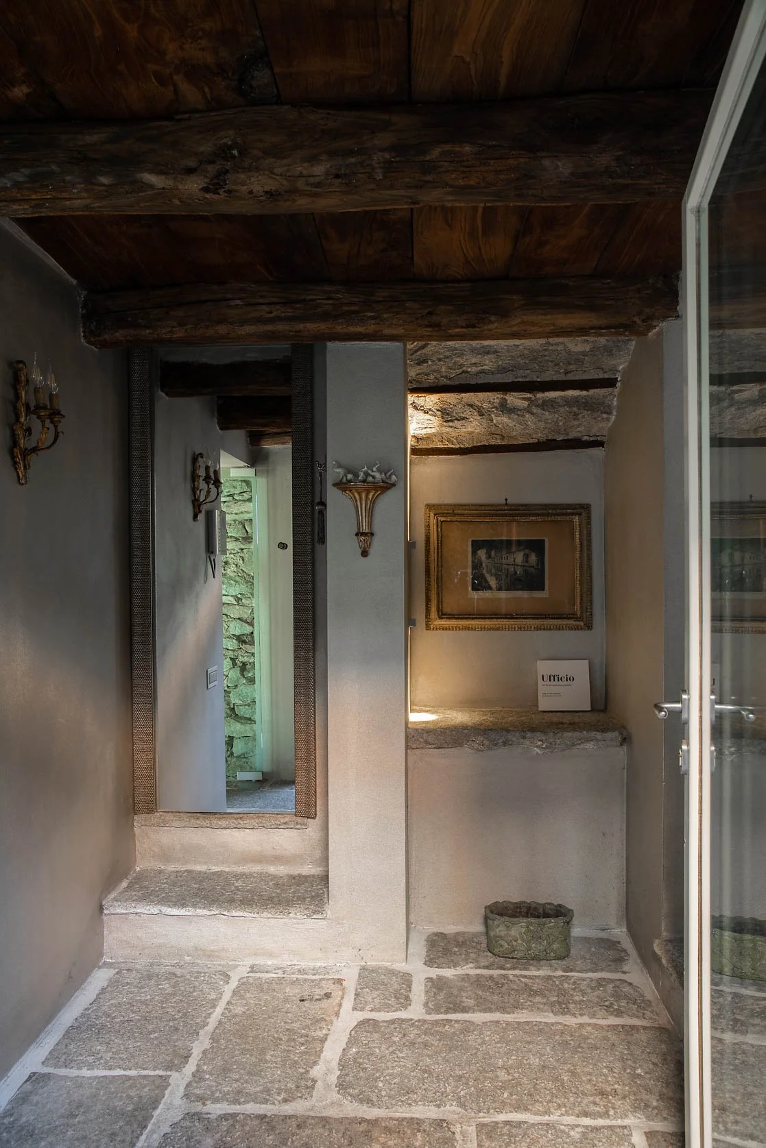La ristrutturazione ha seguito un approccio conservativo e misurato, volto a valorizzare le strutture esistenti, i materiali originari e le pavimentazioni in pietra, recuperate e adattate a una nuova funzione interna.